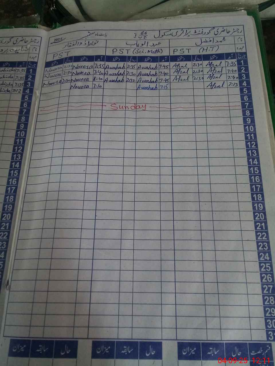 | CNIC | Full Name | Designation | R/C | Absence During Last Calender Month |