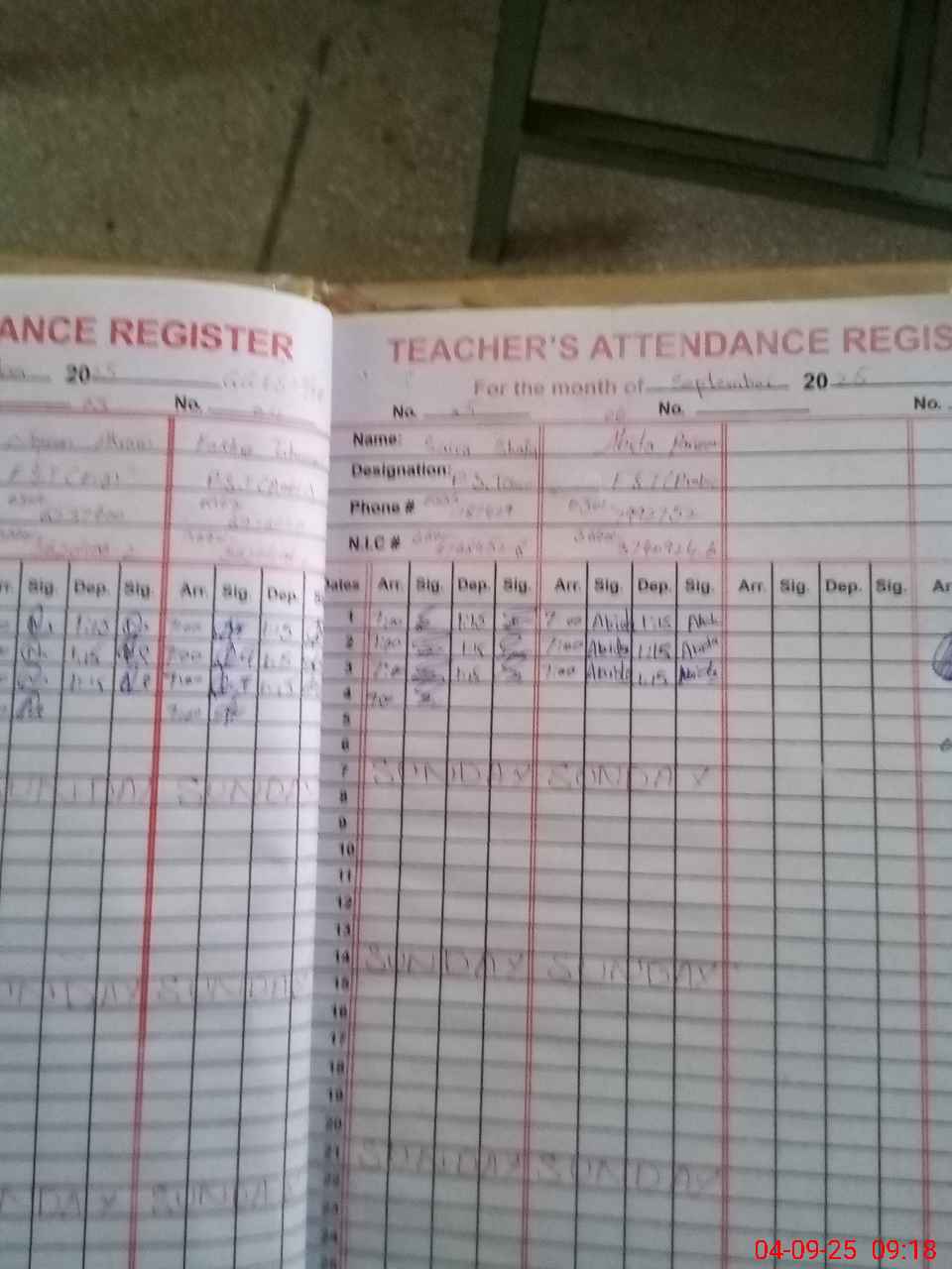 | Name: Su**** Iq**** Designation: (School Headmaster's/Headmistress's) Est G Phone/Cell Number: 03**** |