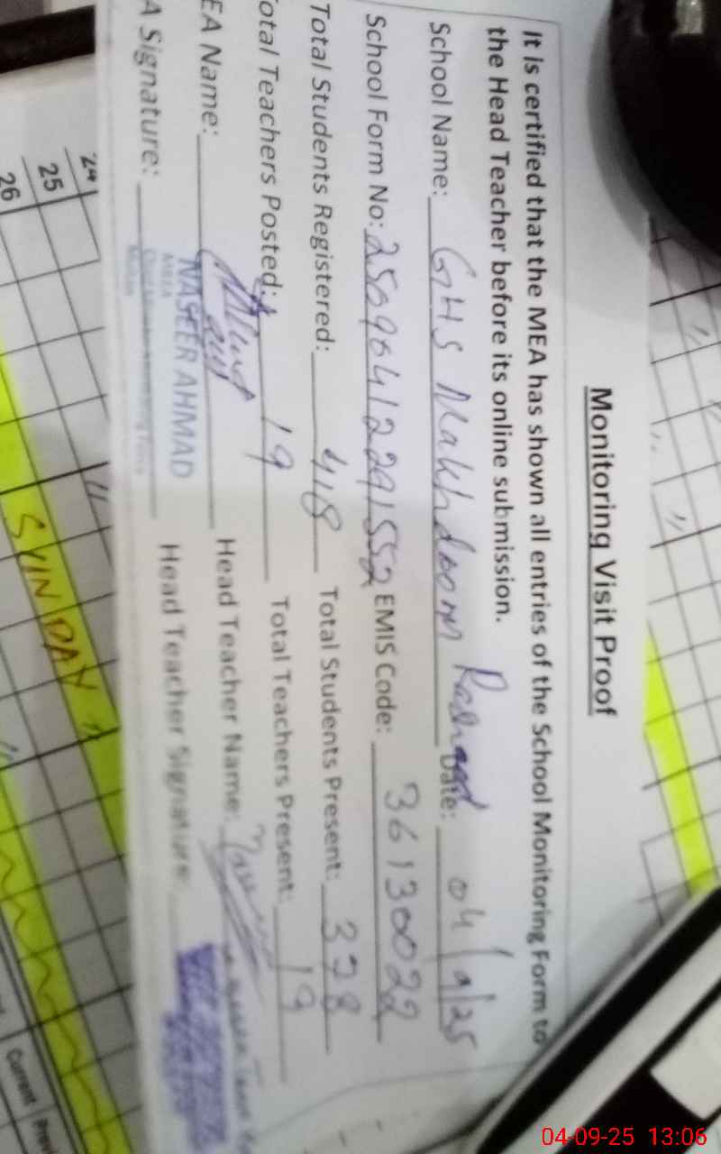 | EMIS Code: 36130022 | Name of School: GHS MAKHDOOM RASHEED | |||