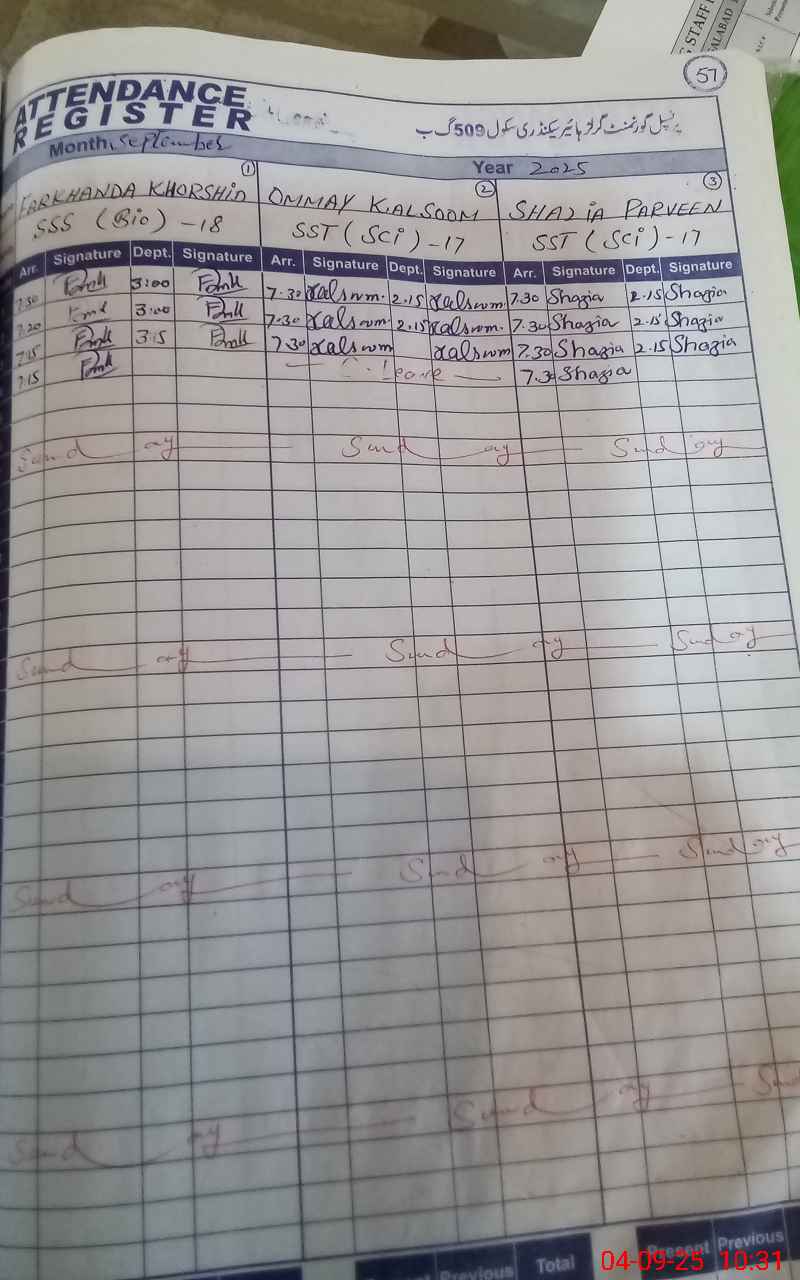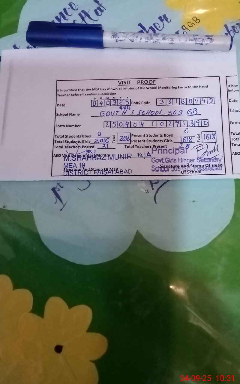 | EMIS Code: 33160449 | Name of School: GGHSS CHAK NO 509 GB | |||