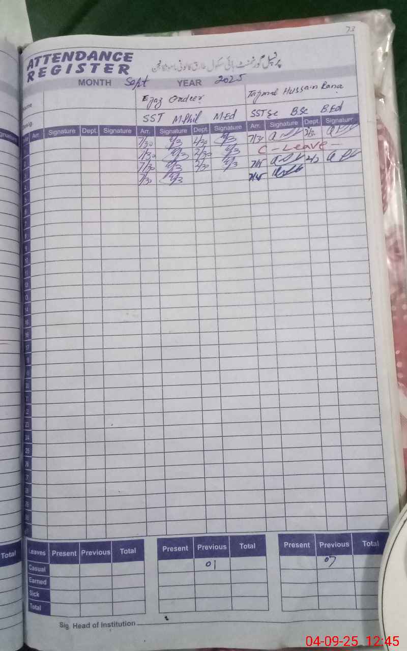 | Name: EJ**** QA**** Designation: (School Headmaster's/Headmistress's) SST (GENERAL) Phone/Cell Number: 03**** |