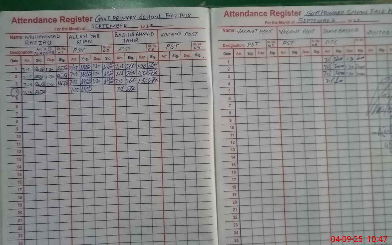| EMIS Code: 39210087 | Name of School: GPS FAIZ PUR P.O BOYLE GANJ | |||