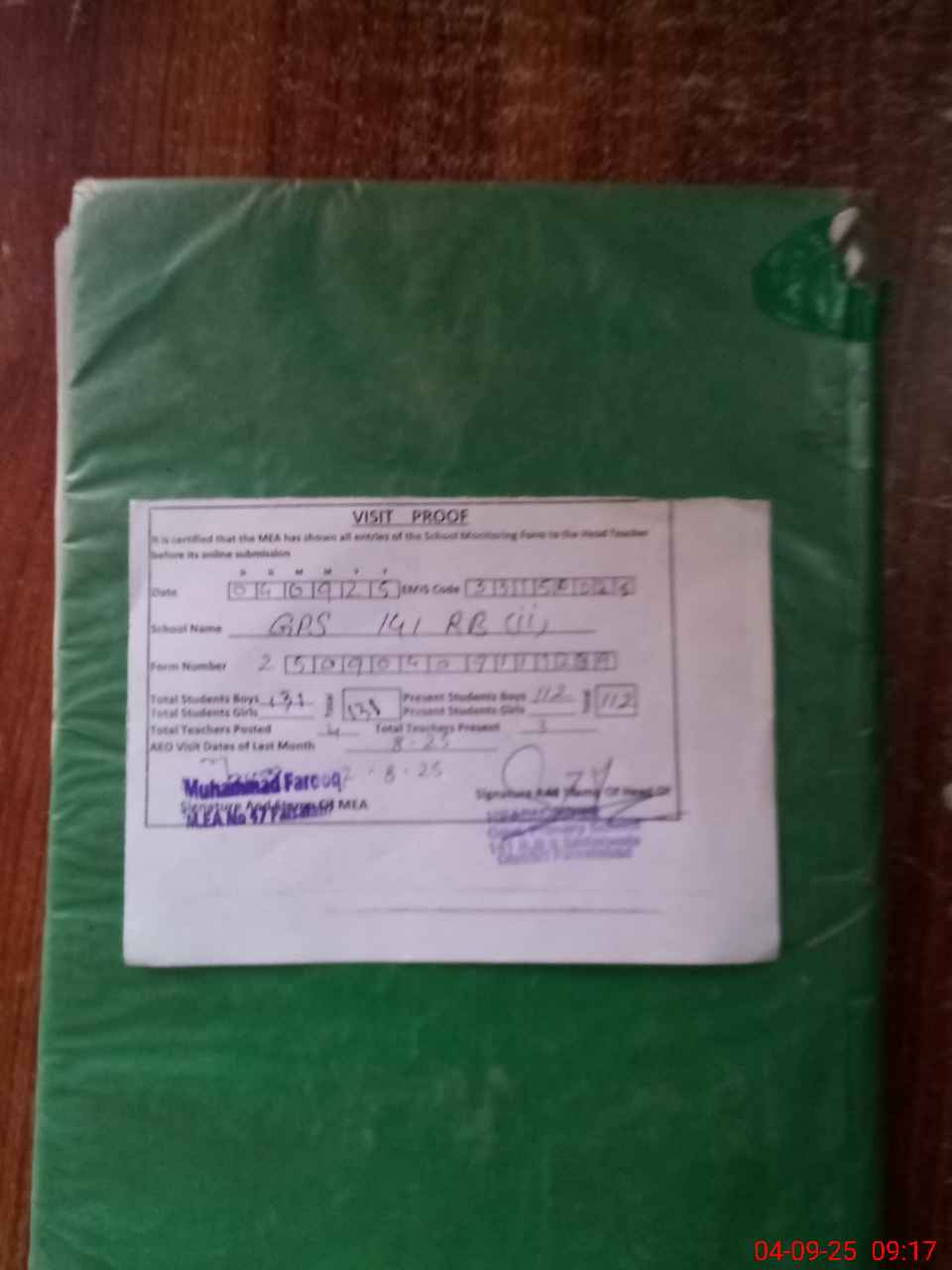 | EMIS Code: 33150025 | Name of School: GPS 141 RB II | |||