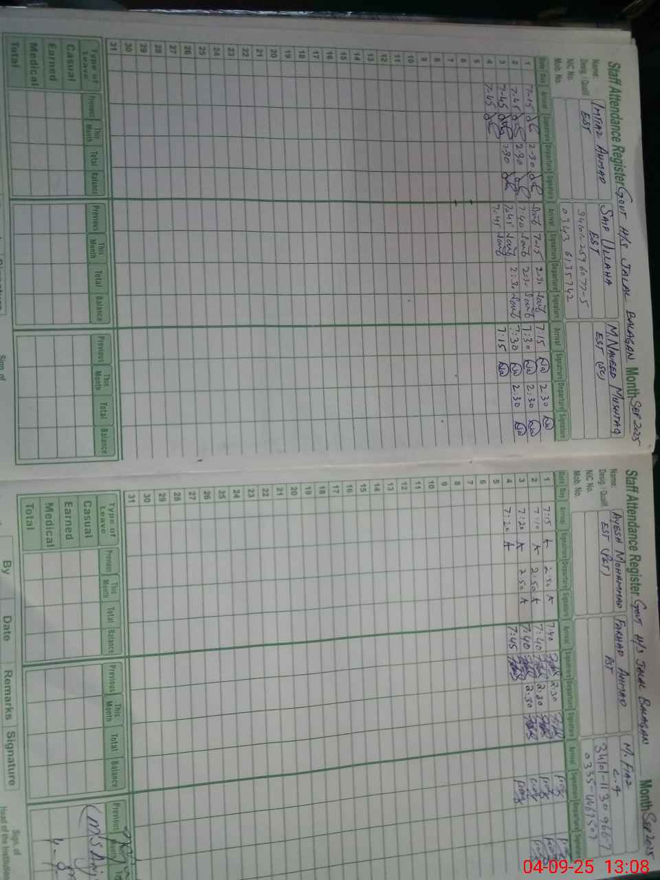| Name: Ra**** Ka**** Fa**** Designation: (School Headmaster's/Headmistress's) S S T General Phone/Cell Number: 03**** |