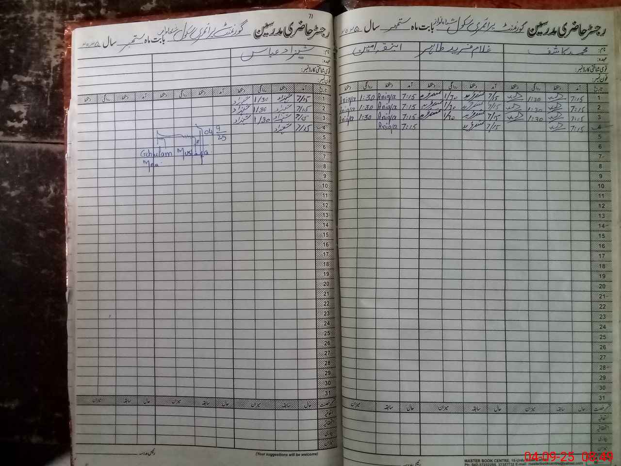 | Attendance Register | Head Teacher | MEA with School | Visit Proof |