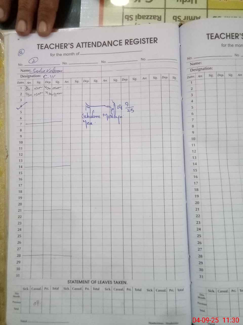 | Name: Ab**** Ma**** Designation: (School Headmaster's/Headmistress's) SST Phone/Cell Number: 03**** |