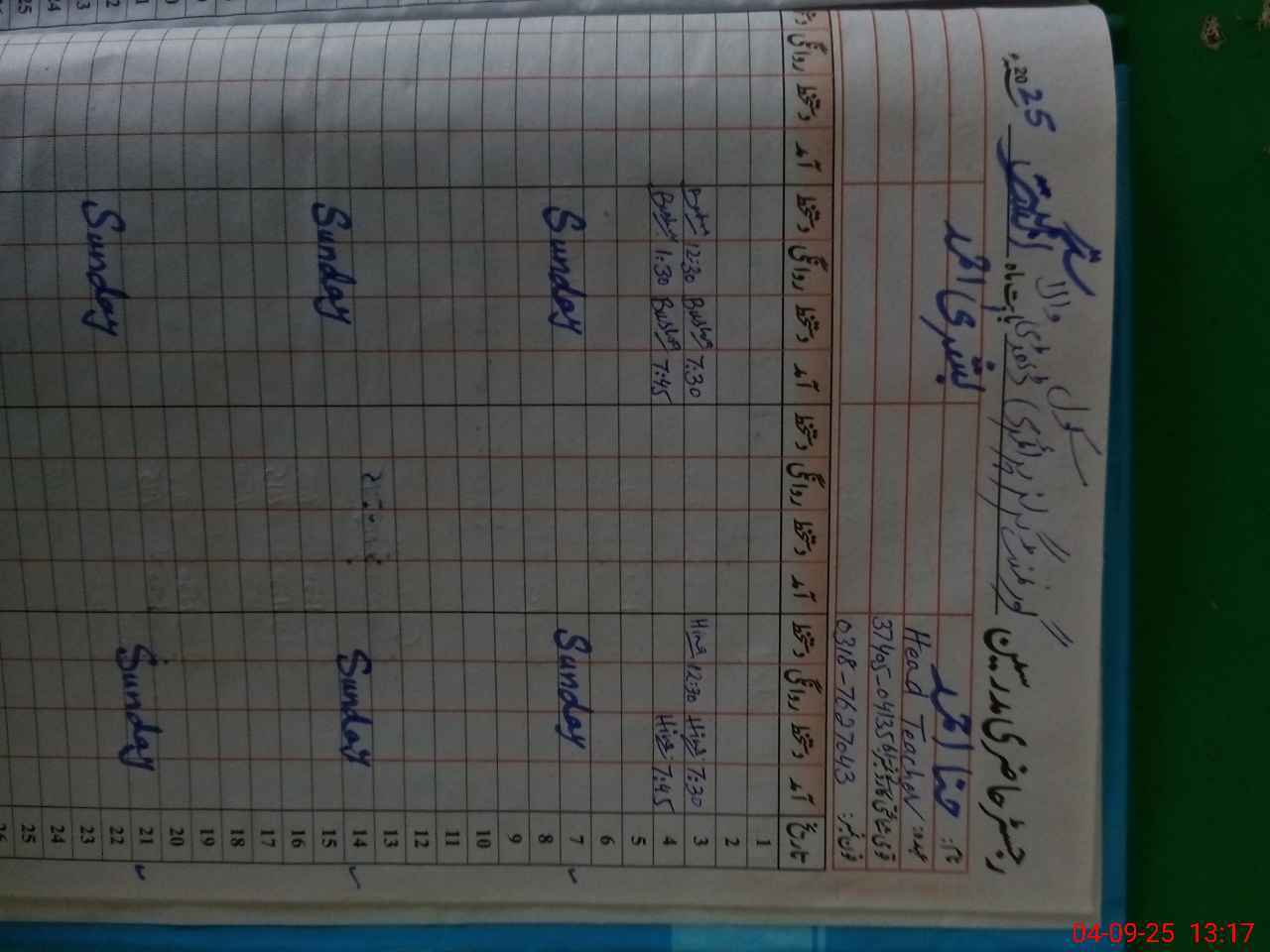 | Name: HI**** AH**** Designation: (School Headmaster's/Headmistress's) PST ( HEAD TEACHER Phone/Cell Number: 03**** |