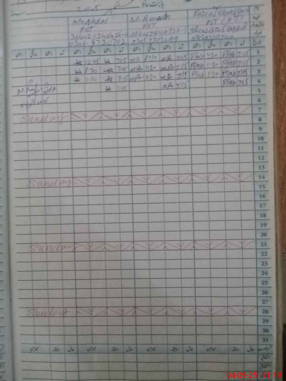 | CNIC | Full Name | Designation | R/C | Absence During Last Calender Month |