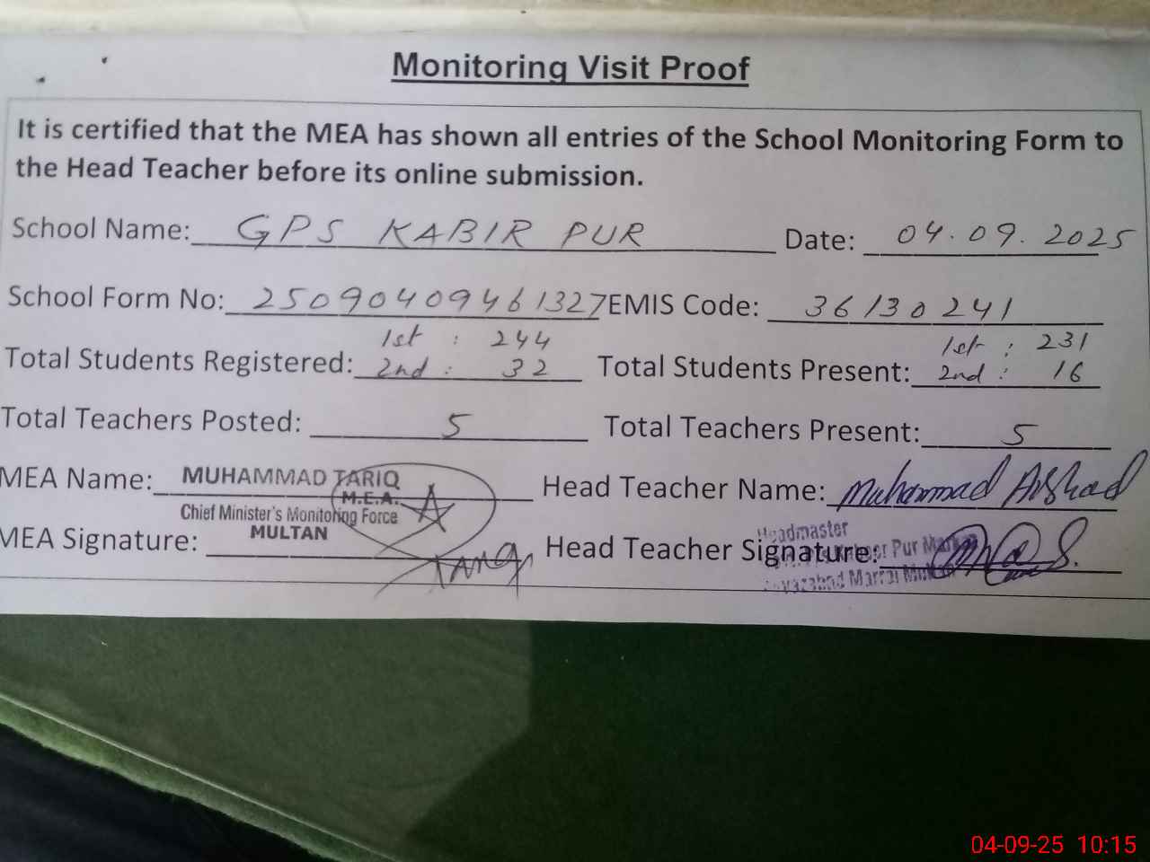 | EMIS Code: 36130241 | Name of School: GES KABIR PUR MULTAN | |||