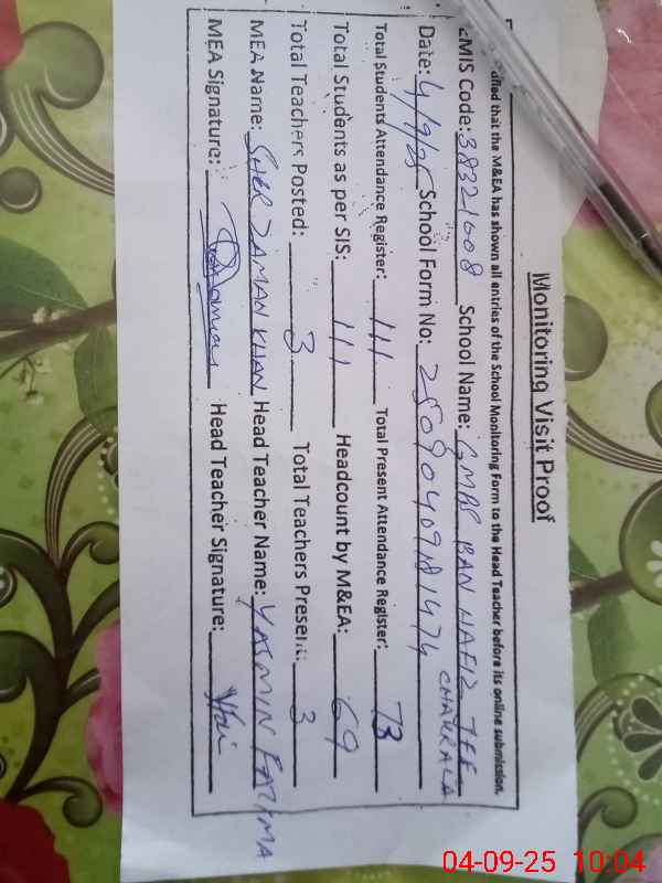| EMIS Code: 38321008 | Name of School: GMPS BAN HAFIZ JEE CHAKRALA | |||