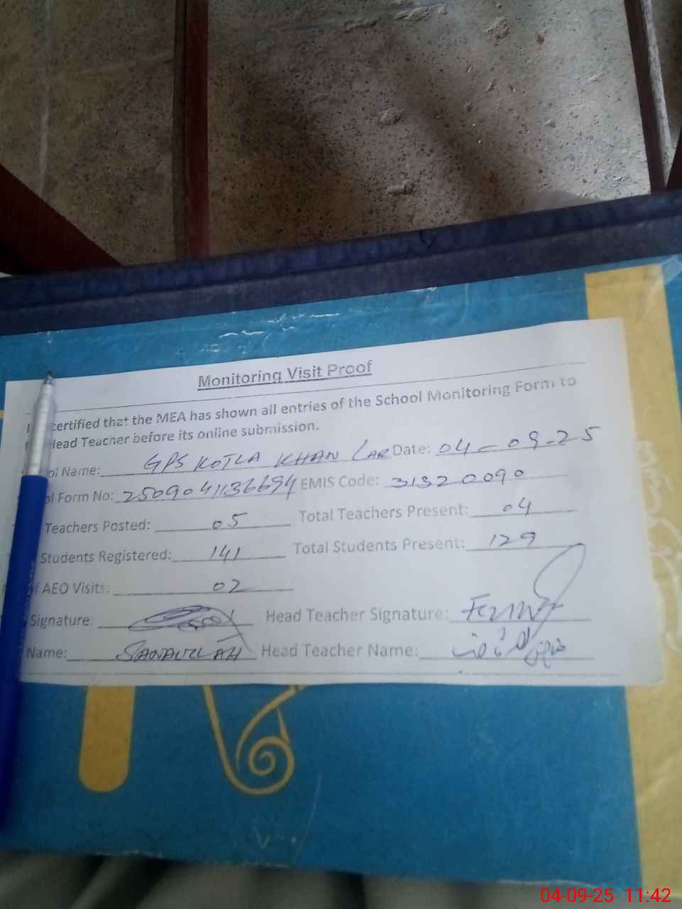 | EMIS Code: 31320090 | Name of School: GPS KOTLA KHAN LAR | |||