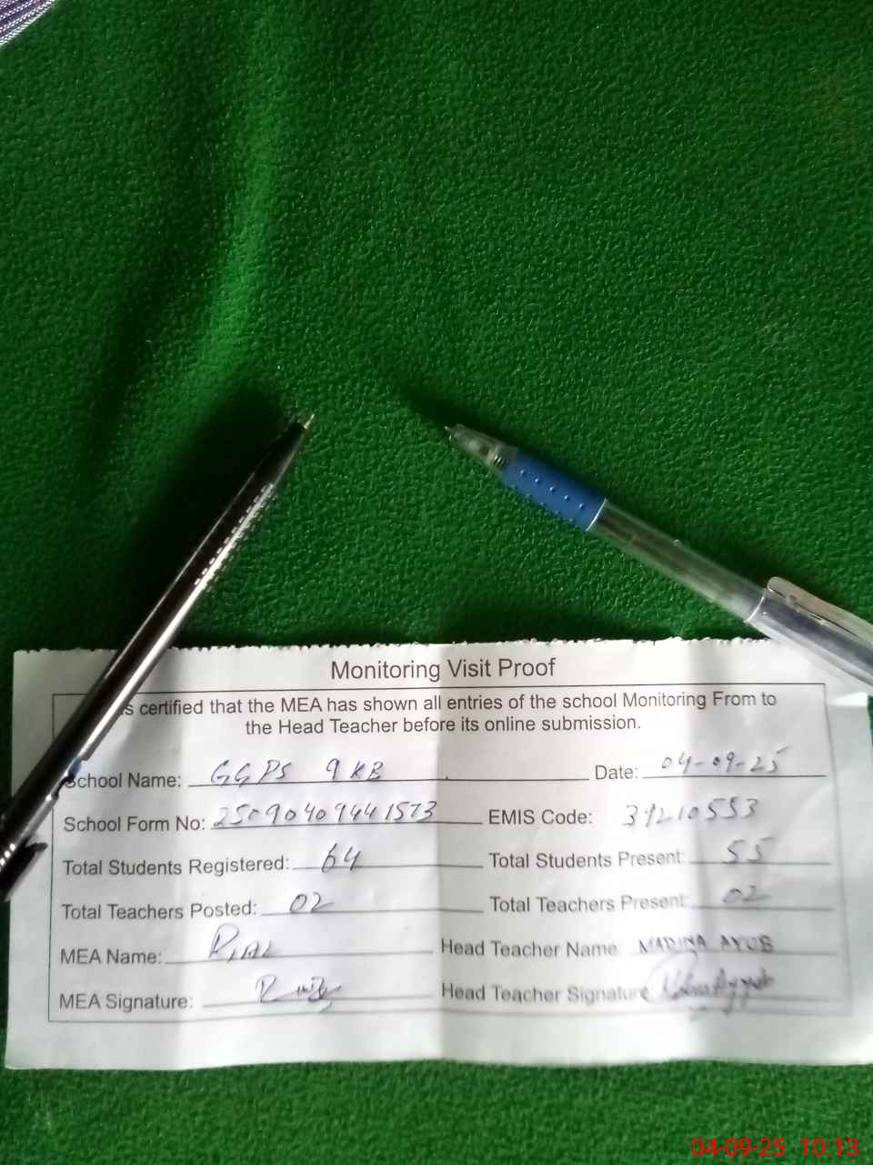 | EMIS Code: 39210553 | Name of School: GGPS 9/KB | |||