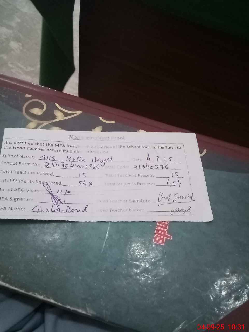 | EMIS Code: 31340276 | Name of School: GHS KOTLA HAYAT | |||