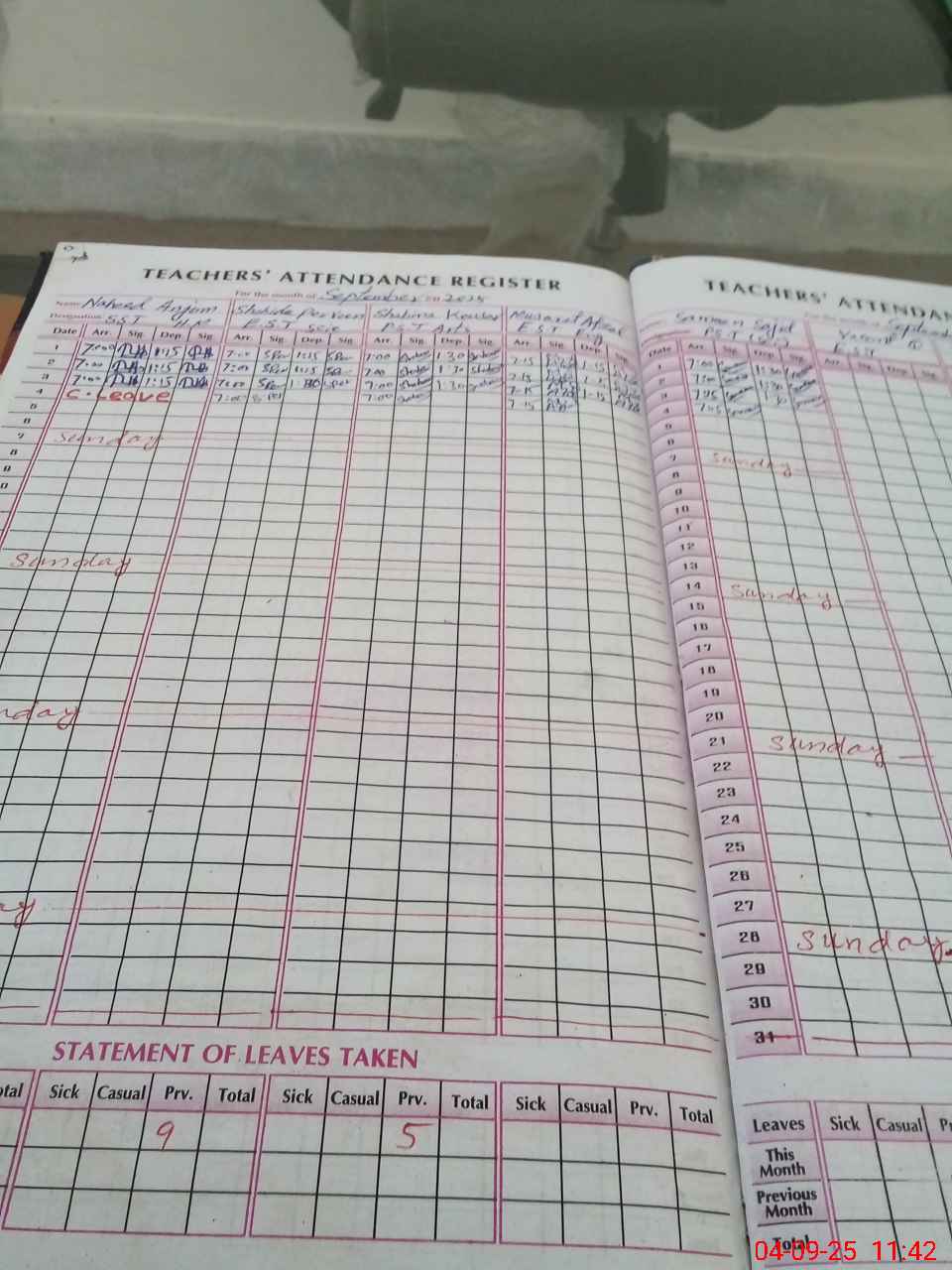 | 31**** | Na**** An**** | Regular | 2 | 0 | 0 | 0 | 0 | 0 | 0 | 0 | 2 | Absent (Un-Authorized) | |
