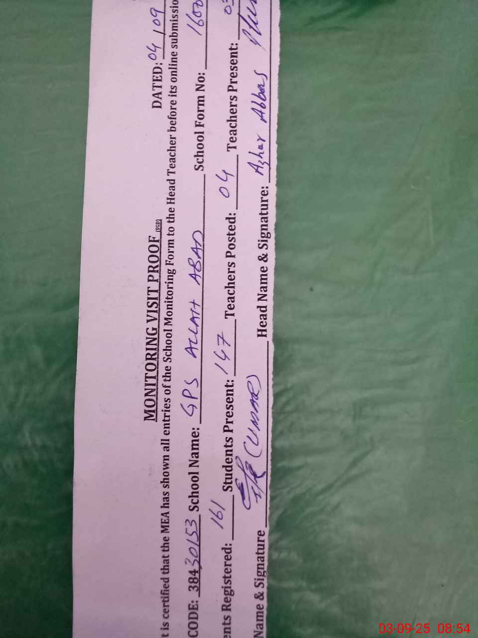 | EMIS Code: 38430153 | Name of School: GPS ALLAH ABAD | |||
