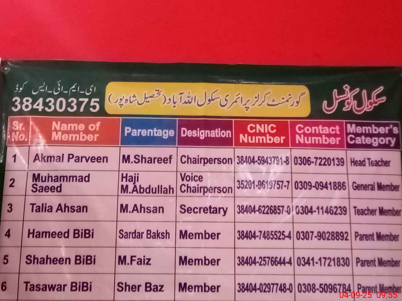| EMIS Code: 38430375 | Name of School: GGPS ALLAH ABAD | |||