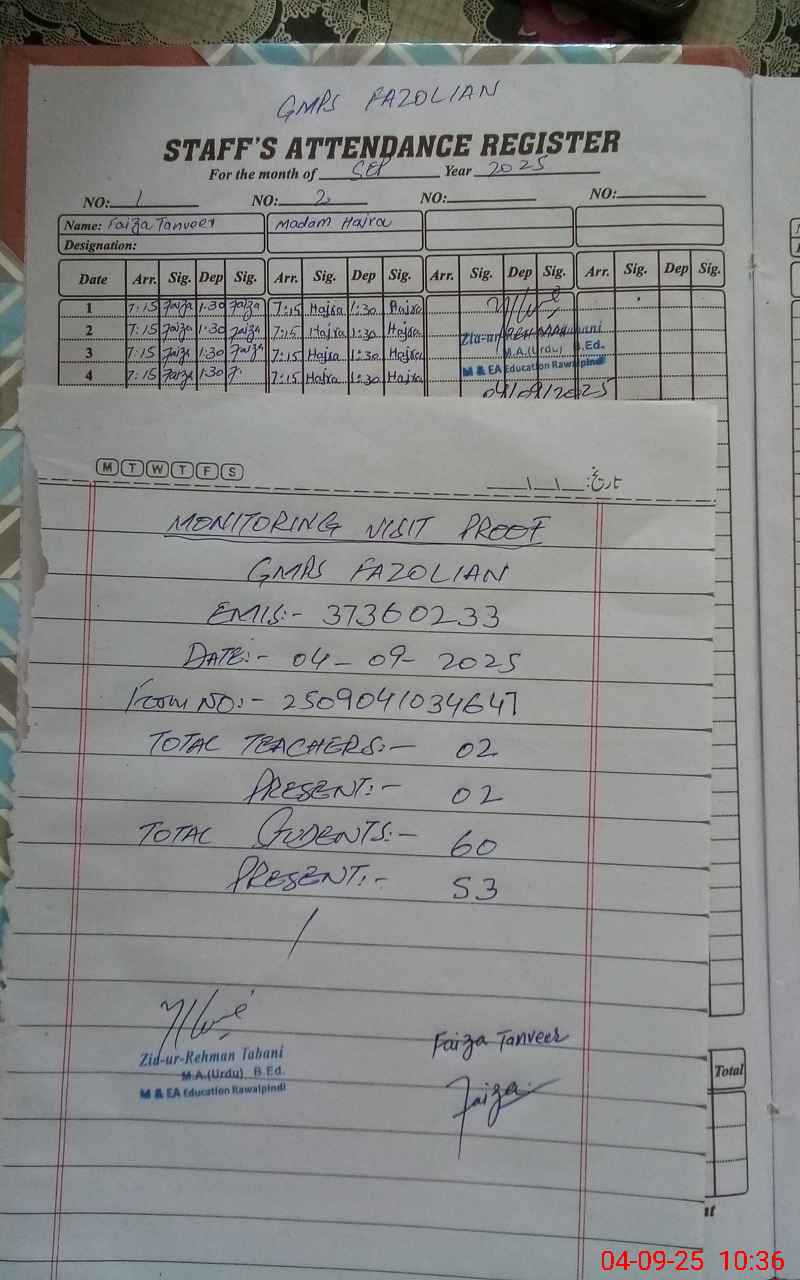 | EMIS Code: 37360233 | Name of School: GMPS FAZOLIAN | |||