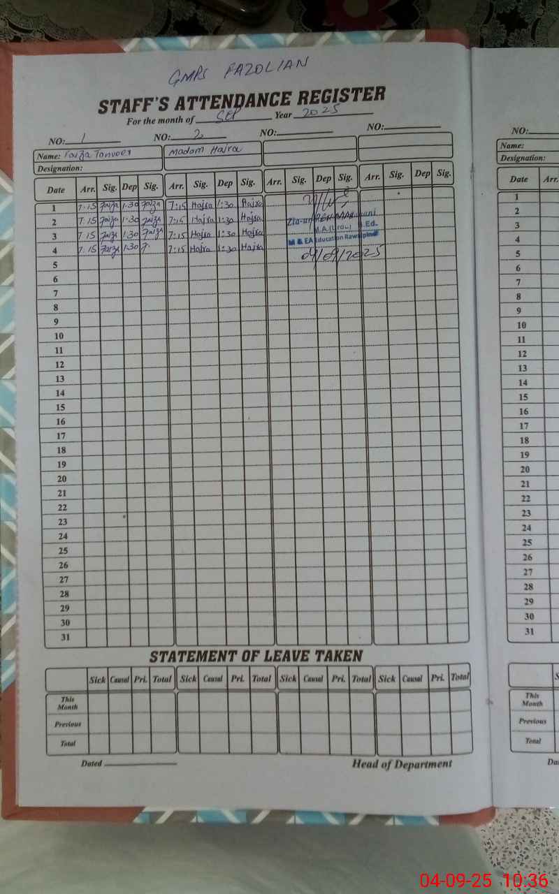 | Attendance Register | Head Teacher | MEA with School | Visit Proof |