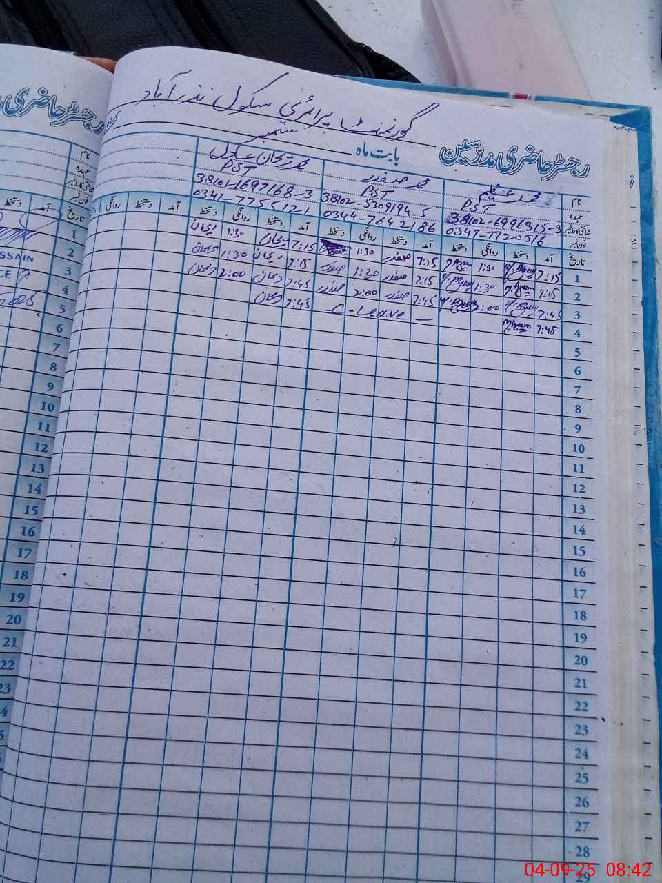 | Name: Ka**** Sh**** Designation: (School Headmaster's/Headmistress's) PST HEAD MASTER Phone/Cell Number: 03**** |