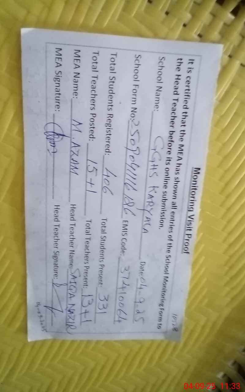 | EMIS Code: 37410064 | Name of School: GGHS KARYALA | |||