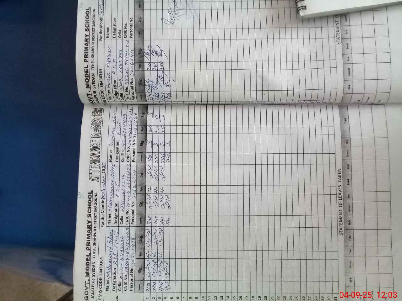 | Name: SA**** NA**** Designation: (School Headmaster's/Headmistress's) PST Phone/Cell Number: 03**** |