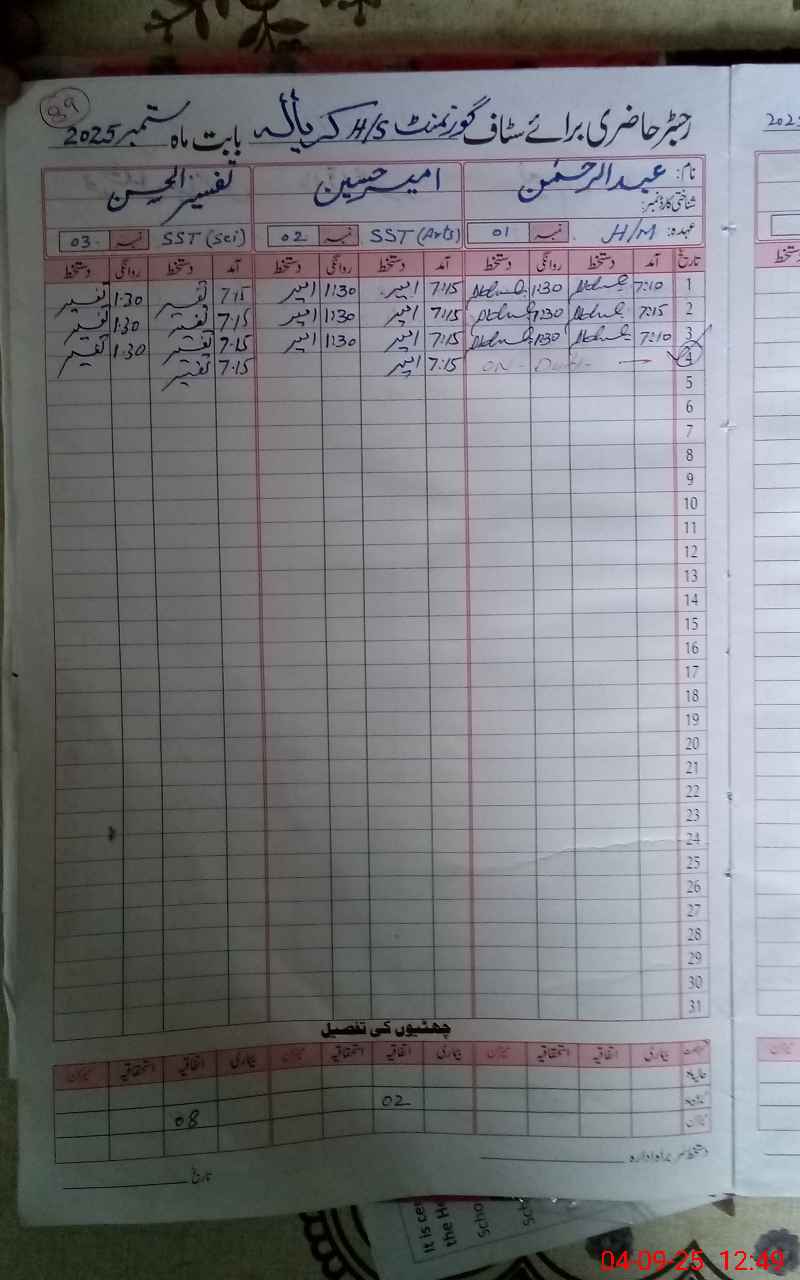 | CNIC | Full Name | Designation | R/C | Absence During Last Calender Month |