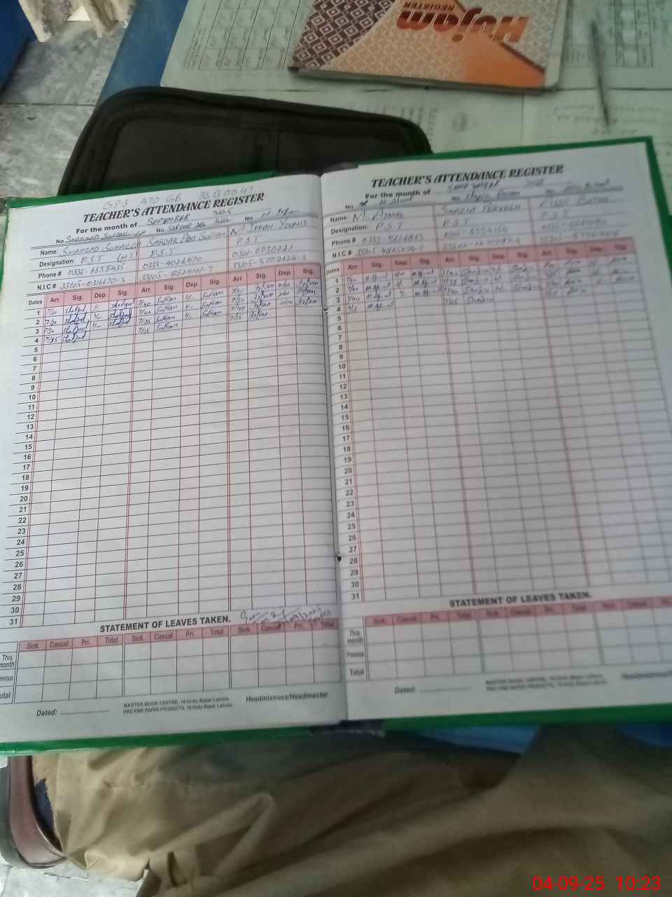 | Name: SH**** SO**** CH Designation: (School Headmaster's/Headmistress's) PST Phone/Cell Number: 03**** |