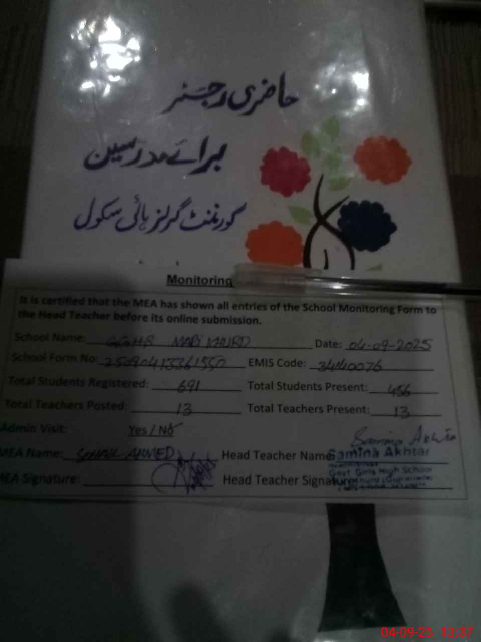 | EMIS Code: 34140076 | Name of School: GGHS MARI KHURD | |||