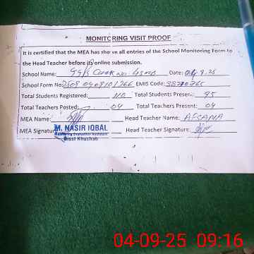 | Attendance Register | Head Teacher | MEA with School | Visit Proof |
