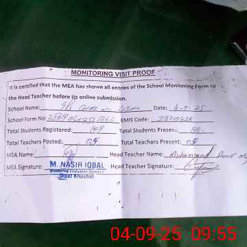 | EMIS Code: 38210428 | Name of School: GPS CHAK NO. 43 MB | |||