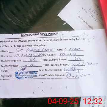 | EMIS Code: 38210429 | Name of School: GHS CHAK NO. 40 MB | |||