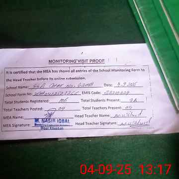 | Attendance Register | Head Teacher | MEA with School | Visit Proof |