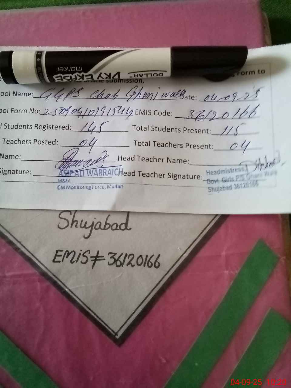 | EMIS Code: 36120166 | Name of School: GGPS CHAH GHANI WALA SHUAJABAD | |||