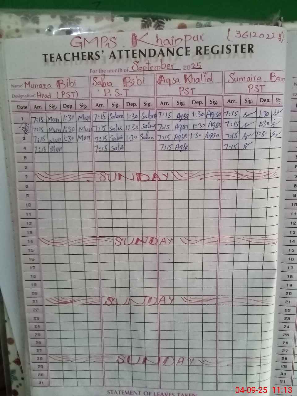 | EMIS Code: 36120228 | Name of School: GMPS KHAIR PUR SHUJABAD | |||