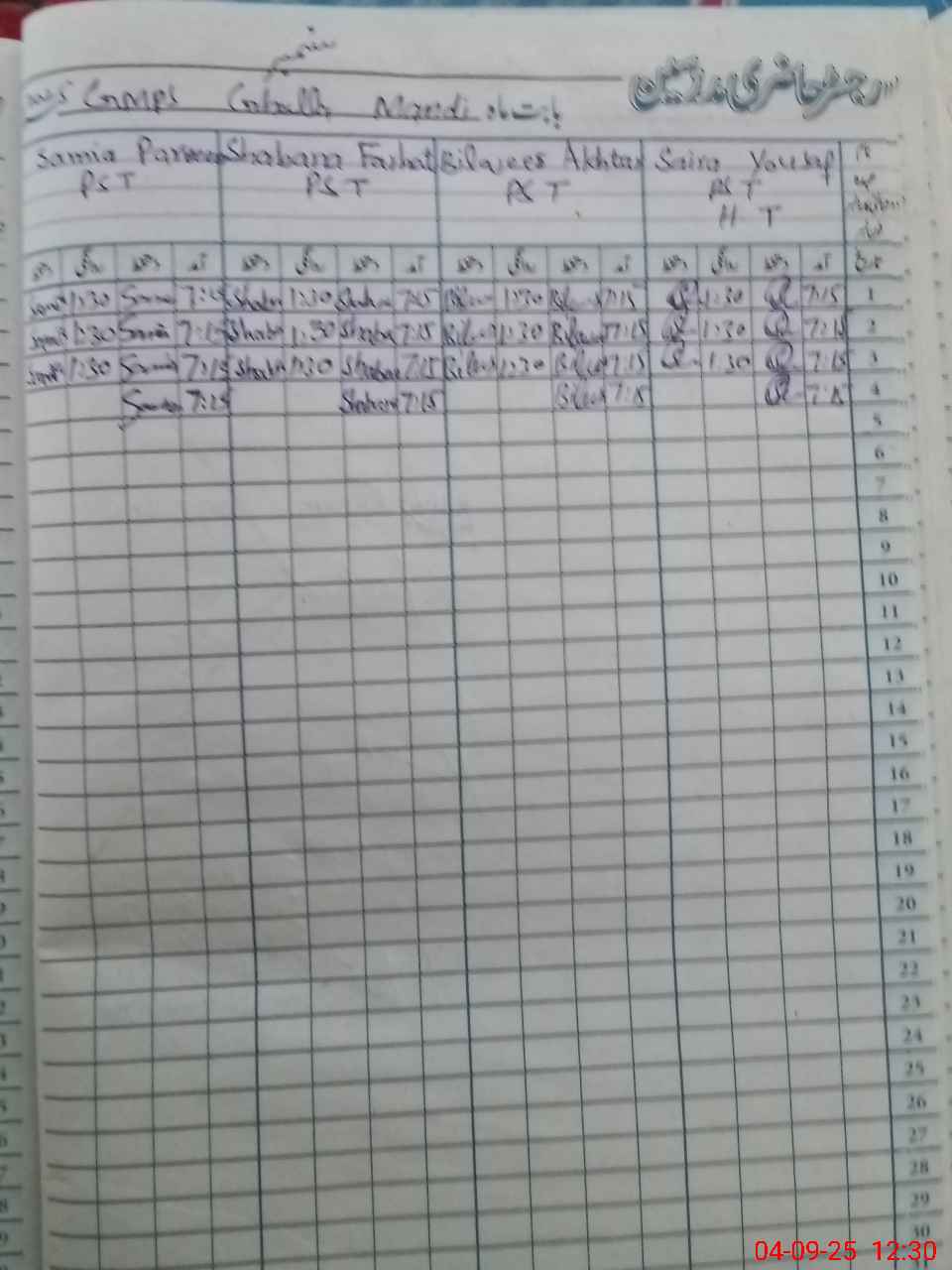 | CNIC | Full Name | Designation | R/C | Absence During Last Calender Month |