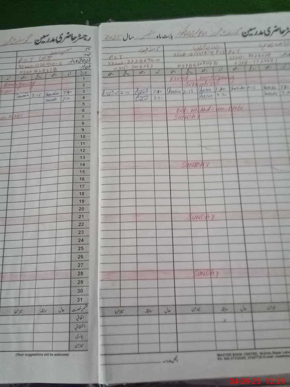 | Name: SU**** SA**** Designation: (School Headmaster's/Headmistress's) PST Phone/Cell Number: 03**** |