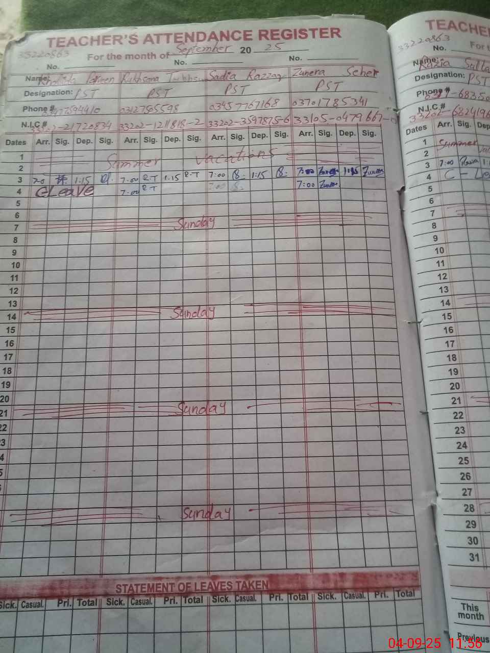 | 33**** | Ra**** Su**** | PST | Regular | 0 | 0 | 0 | 0 | 0 | 0 | 0 | 0 | 0 | Casual |