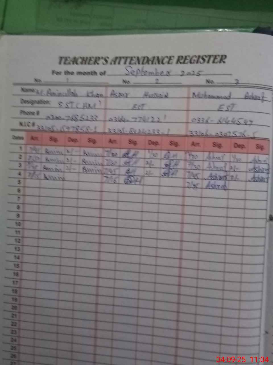 | Name: MU**** AM**** KH**** Designation: (School Headmaster's/Headmistress's) SST (GENERAL ) Phone/Cell Number: 03**** |