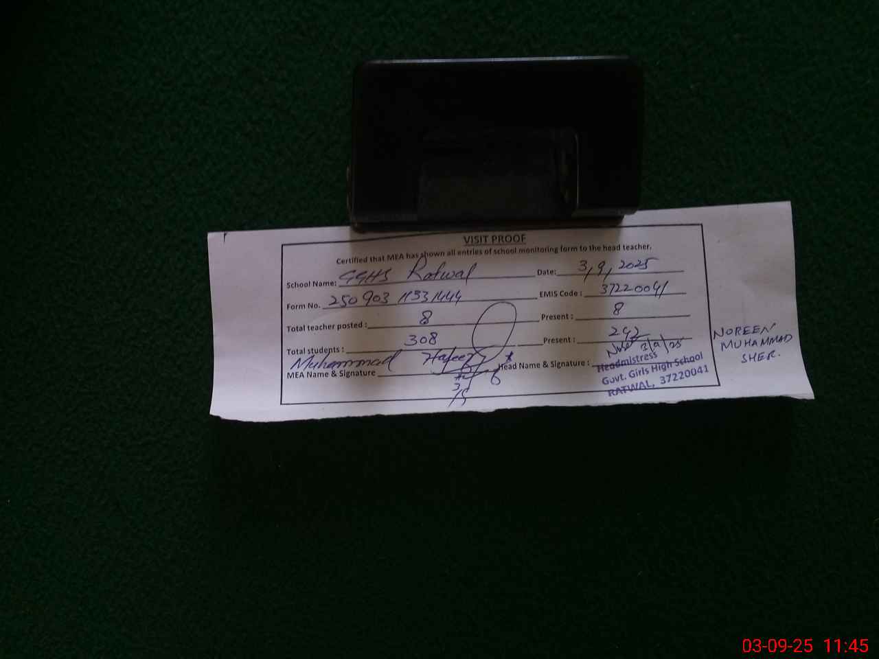 | EMIS Code: 37220041 | Name of School: GGHS RATWAL | |||