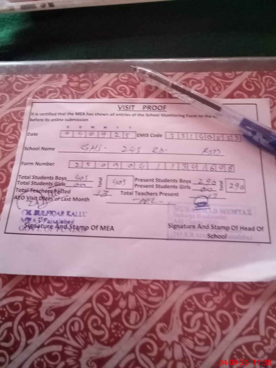 | EMIS Code: 33140553 | Name of School: GHS ISLAMIA CHAK NO 245 RB ABBAS PUR | |||
