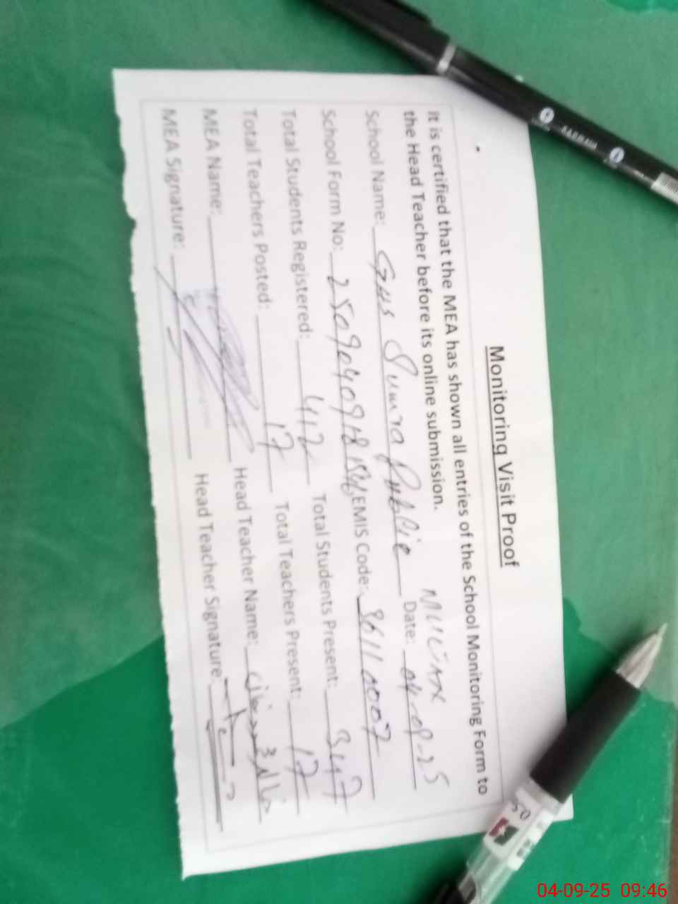 | EMIS Code: 36110007 | Name of School: GHS SUMRA PUBLIC HASSAN PARWANA ROAD MULTAN | |||
