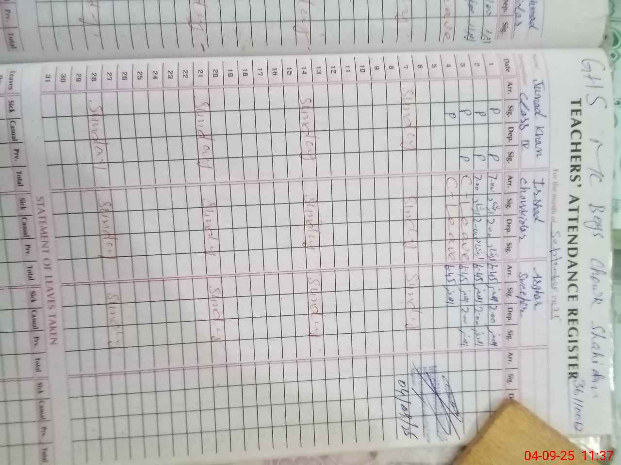 | 00**** | Ab**** Ah**** | CHOKIDAR | Regular | 1 | 0 | 0 | 0 | 0 | 0 | 0 | 0 | 1 | Casual |