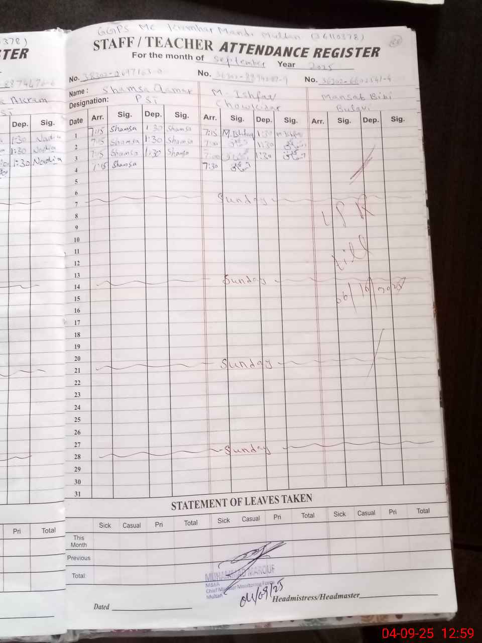 | EMIS Code: 36110378 | Name of School: GGPS MC KUMHAR MANDI WALAYAT ABAD NO.1 MULTAN | |||