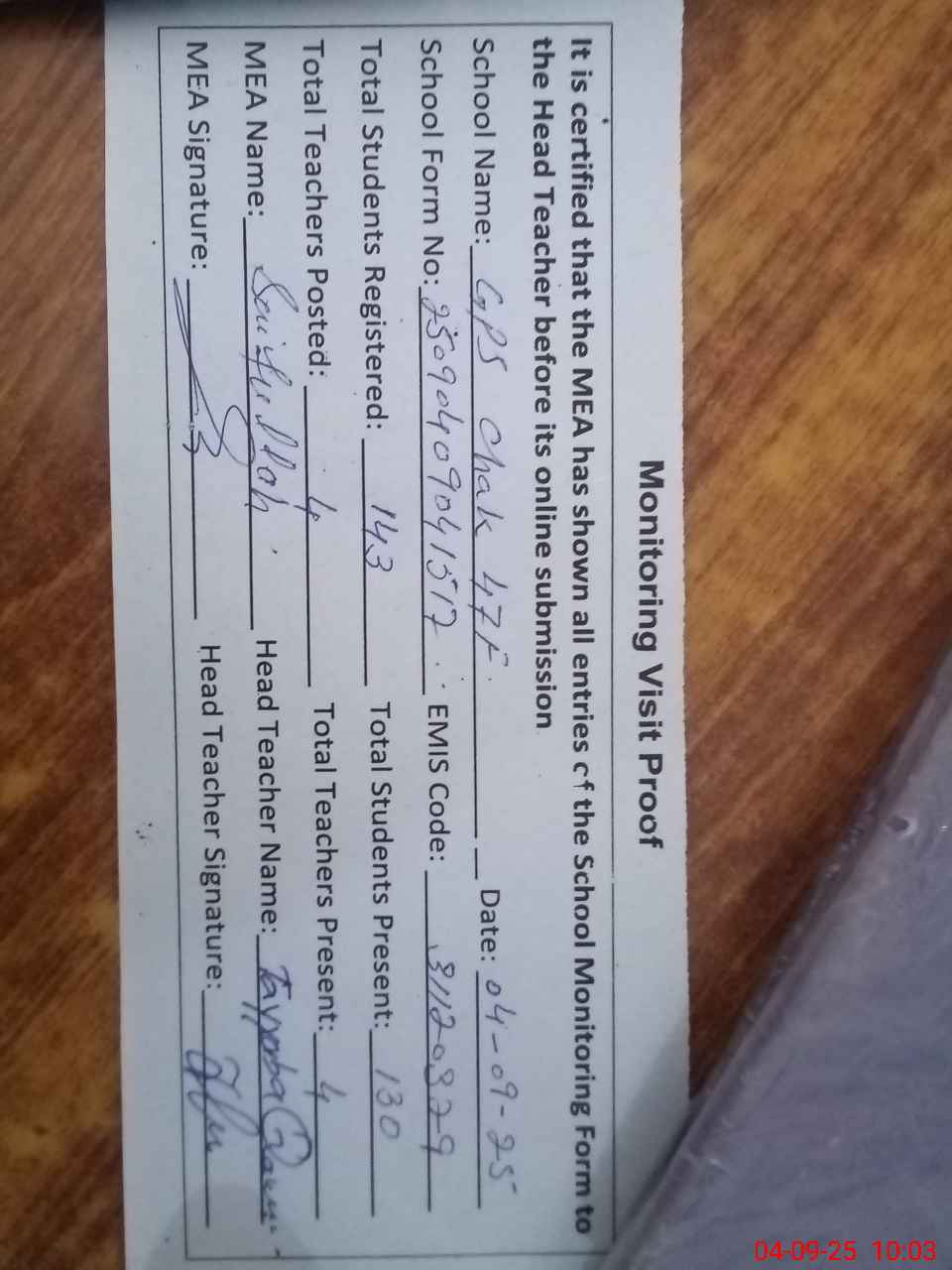 | EMIS Code: 31120329 | Name of School: GPS CHAK 47/F | |||