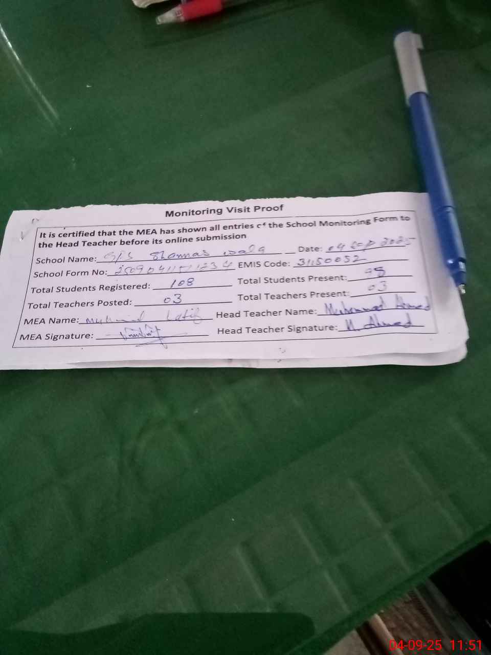 | EMIS Code: 31150052 | Name of School: GPS SHAMAS WALA | |||