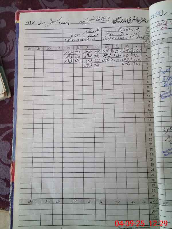 | Name: Mu**** Rm**** Designation: (School Headmaster's/Headmistress's) PST/PTC/JV Phone/Cell Number: 03**** |
