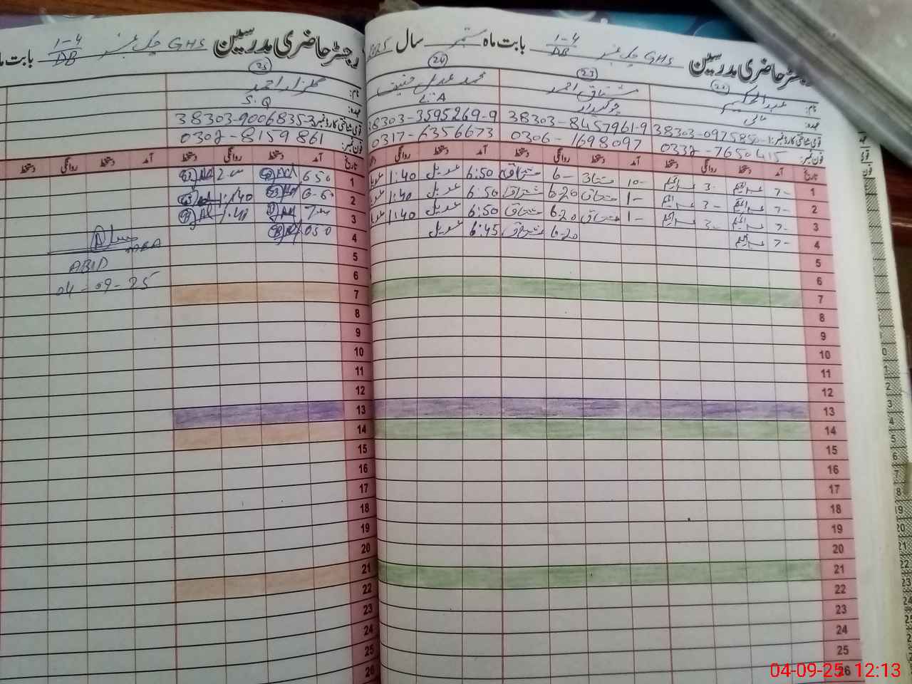 | CNIC | Full Name | Designation | R/C | Absence During Last Calender Month |