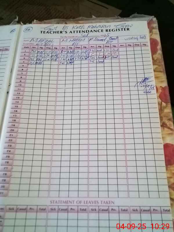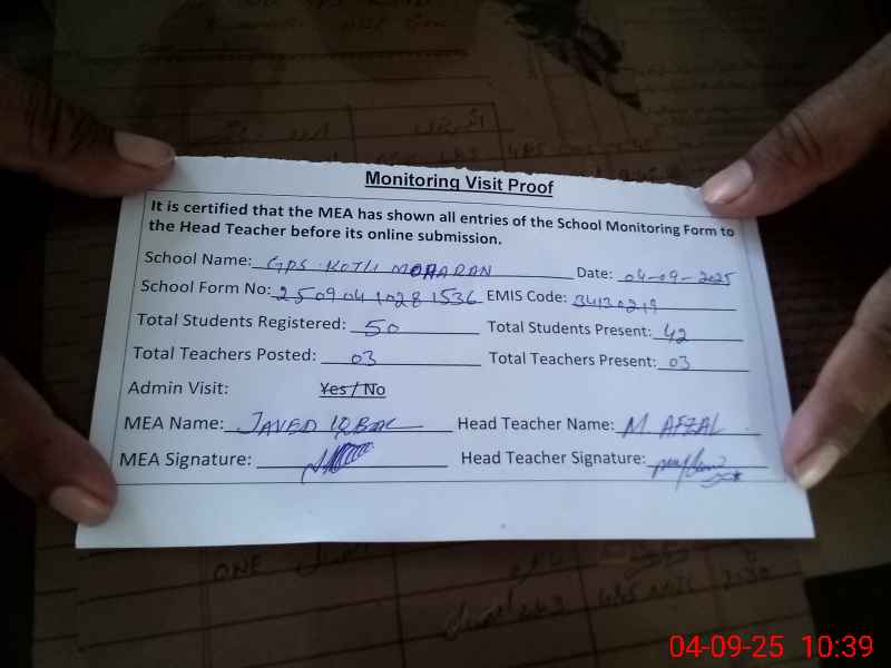 | EMIS Code: 34130219 | Name of School: GPS KOTLI MOHARAN | |||
