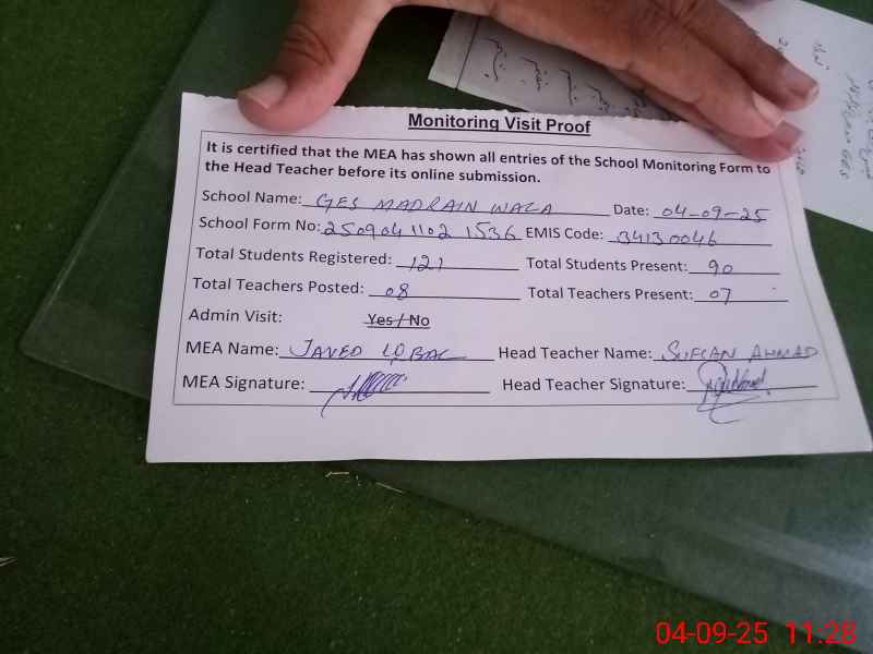 | EMIS Code: 34130046 | Name of School: GES MADRAIN WALA KALAR | |||