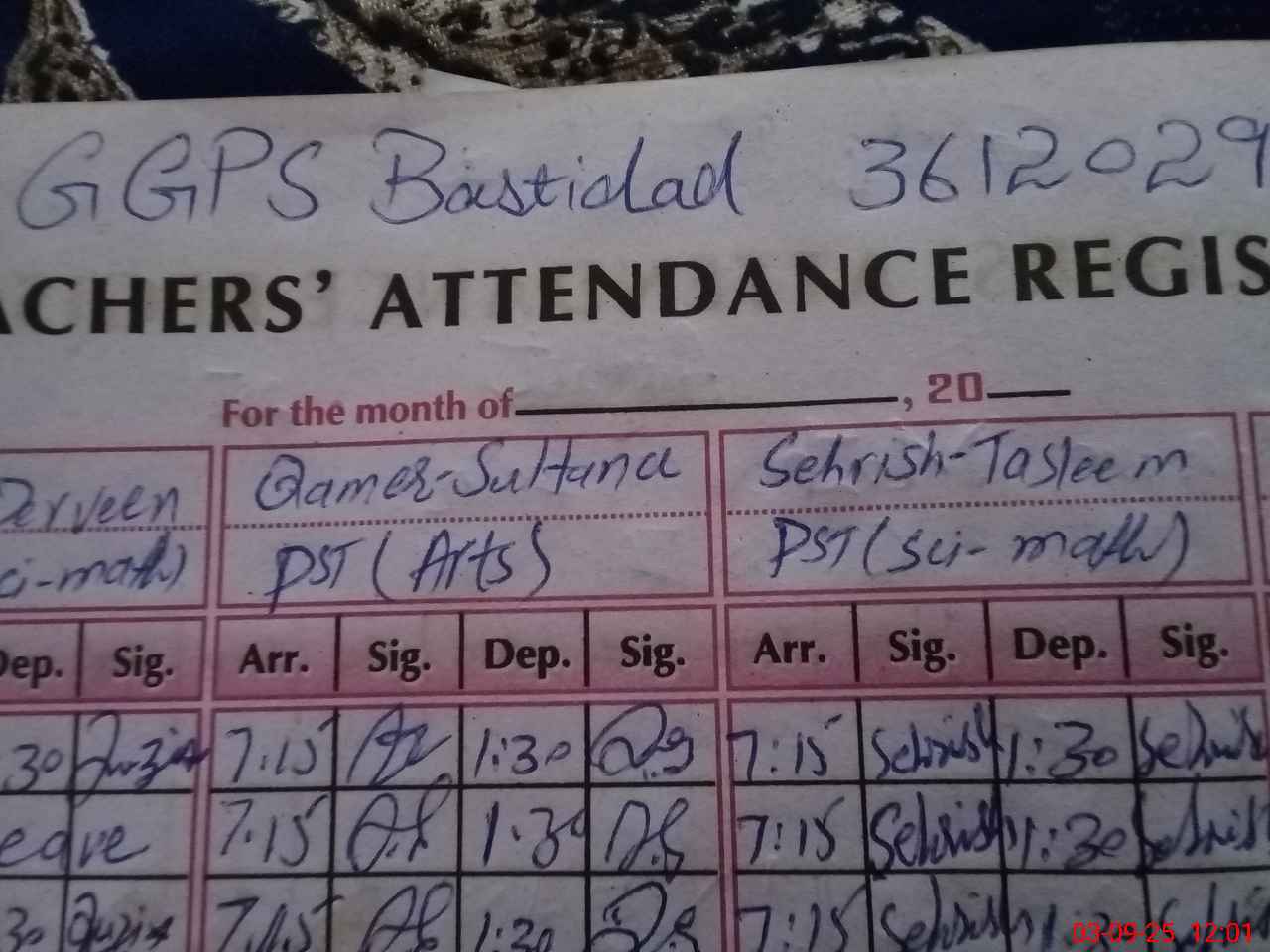 | EMIS Code: 36120293 | Name of School: GGPS BASTI DAD SHUJABAD MULTAN | |||